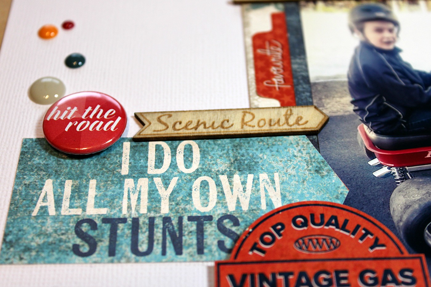 I really like using black and white flair buttons. They go well on any LO!